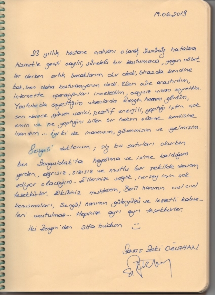 Sevgili doktorum ; siz bu satırları okurken ben Zonguldak'ta hayatıma ve işime kaldığım yerden ağrısız, sızısız ve mutlu bir şekilde devam ediyor olacağım.