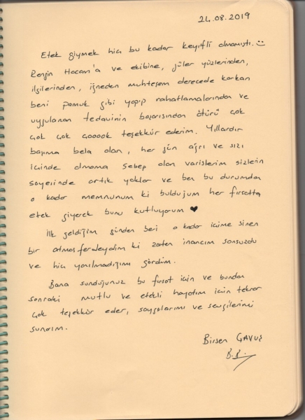 Rengin hocama ve ekibine, güler yüzlerinden, ilgilerinden, iğneden muhteşem derecede korkan beni pamuk gibi yapıp rahatlatmalarından ve uygulanan tedavinin başarısından ötürü çok çok çooook teşekkür ederim. Yıllardır başıma bela olan, her gün ağrı ve sızı içinde olmama sebep olan varislerim sizlerin sayesinde artık yoklar ve ben bu durumdan o kadar memnunum ki bulduğum her fırsatta etek giyerek bunu kutluyorum.