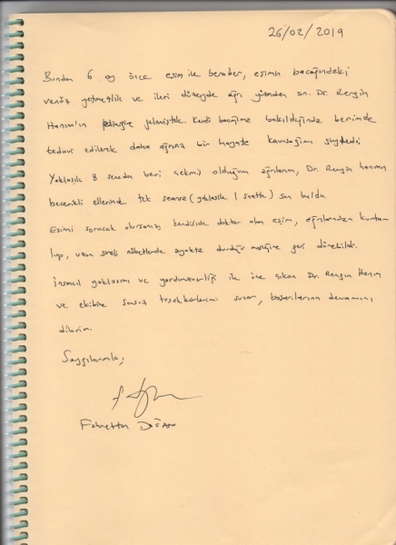 İnsancıl yaklaşımı ve yardımseverliği ile öne çıkan Dr. Rengin Hanım ve ekibine sonsuz teşekkürlerimi sunar, başarılarının devamını dilerim.